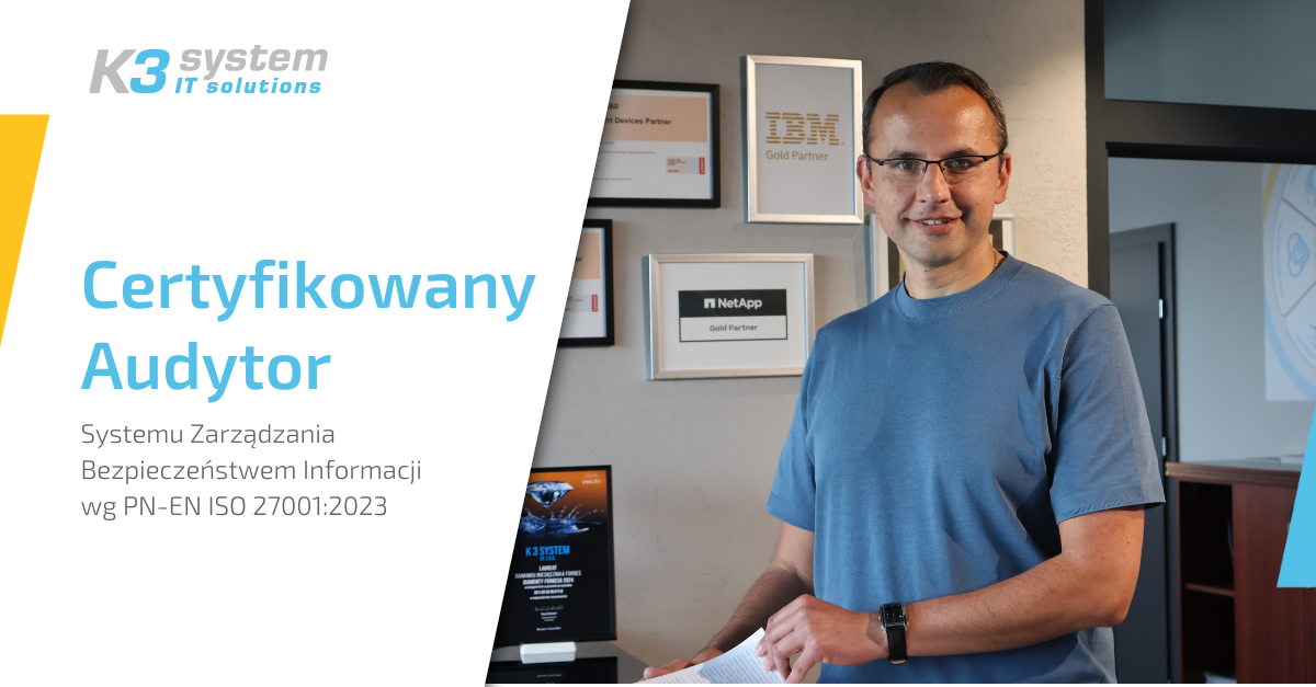 W zeszłym roku Paweł Jedynak pomyślnie przeszedł wszelkie egzaminy i został audytorem wewnętrznym i wiodącym w zakresie Systemu Zarządzania Bezpieczeństwem Informacji zgodnie z normą PN-EN ISO 27001:2023.
